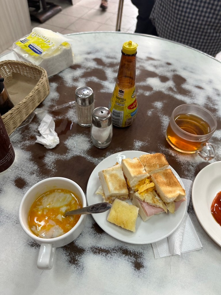 毎日午前6時から午後2時半まで営業しており、おすすめはブレックファーストトースト。温かい紅茶かコーヒーと一緒にポーチドエッグとขนมปังสังขยา (パンダンココナッツクリームパン / Thai Pandan Coconut custard) をぜひ一緒に注文しよう。